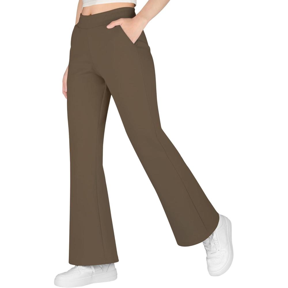 BIG ELEPHANT Girls Flare Pants with Side Pockets – Casual Bell Bottom Dress Pants for Girls, Size 6-15 Years(Brown)