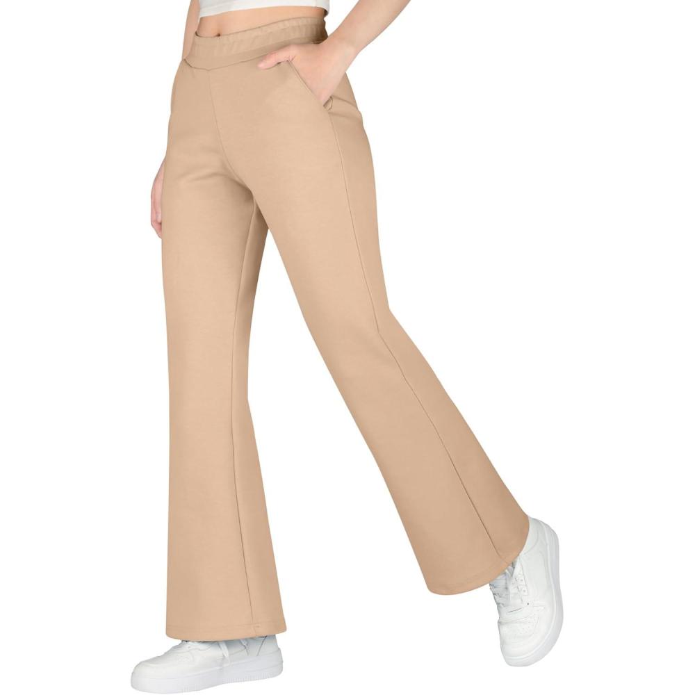 BIG ELEPHANT Girls Flare Pants with Side Pockets – Casual Bell Bottom Dress Pants for Girls, Size 6-15 Years(Dark Apricot)